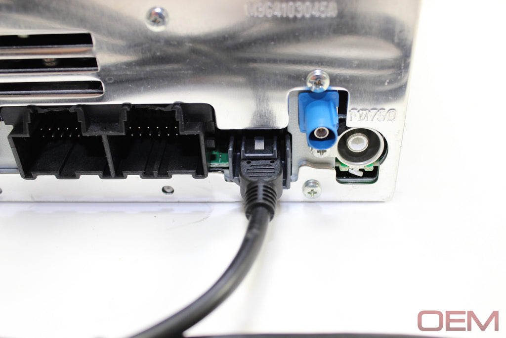 This cable is designed for the factory GM® radio featuring rear USB input. Just route it through your disassembled cigarette lighter and plug it into the USB input located on the back of the radio.