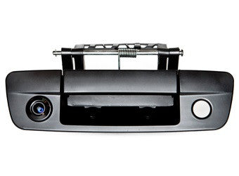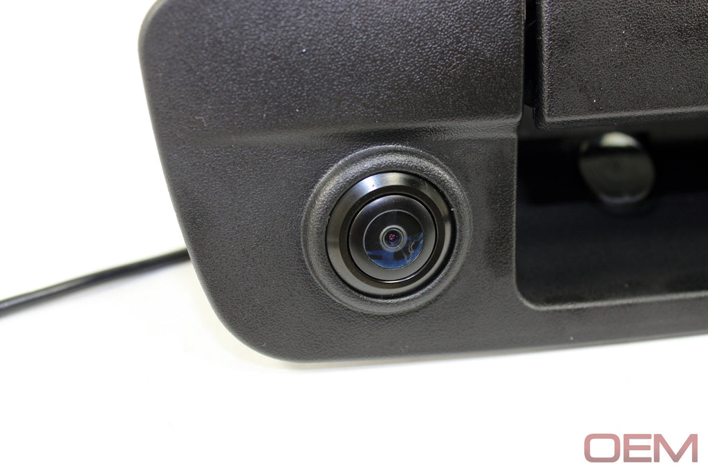 Designed to replace the stock tail gate handle of a Ram pick-up truck. The camera itself is a 170° wide-angle CMOS color camera that is set inside a custom tail-gate handle housing. Once the camera is installed, it looks completely stock and there are no wires showing. The custom design makes it very easy for installers as well as there are no holes that have to be drilled into the tail gate handle for mounting.